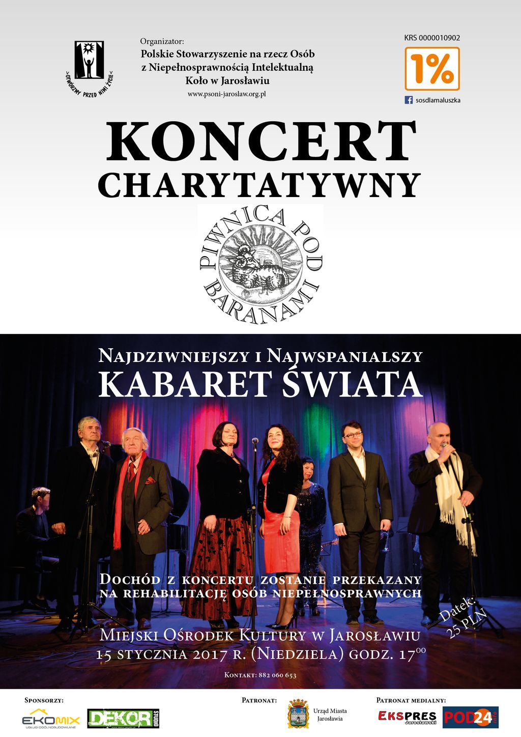 Polskie Stowarzyszenie na rzecz Osób z Niepełnosprawnością Intelektualną Koło w Jarosławiu serdecznie zaprasza na koncert artystów Piwnicy Pod Baranami.