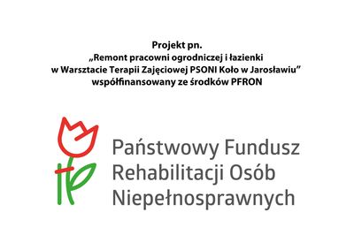 PSONI Koło w Jarosławiu w okresie od 1.08.2024 r. do 31.12.2024 r. realizuje zadanie pn. „Remont pracowni ogrodniczej i łazienki w Warsztacie Terapii Zajęciowej PSONI Koło w Jarosławiu”.